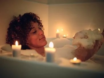 Set the mood for peace. Let the scents of lavender, eucalyptus, or frankincense help you melt the stress away.